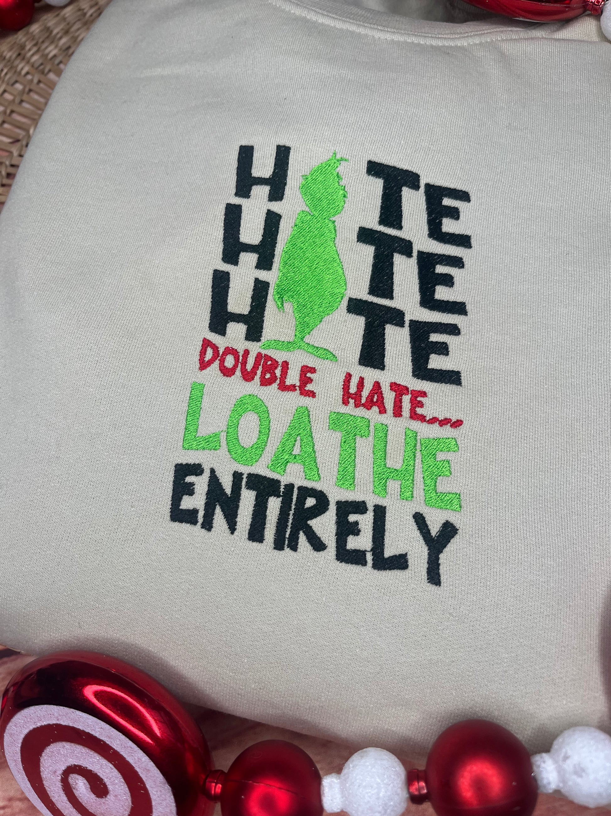 HATE HATE HATE DOUBLE HATE LOATHE ENTIRELY EMBROIDERED SWEATSHIRT