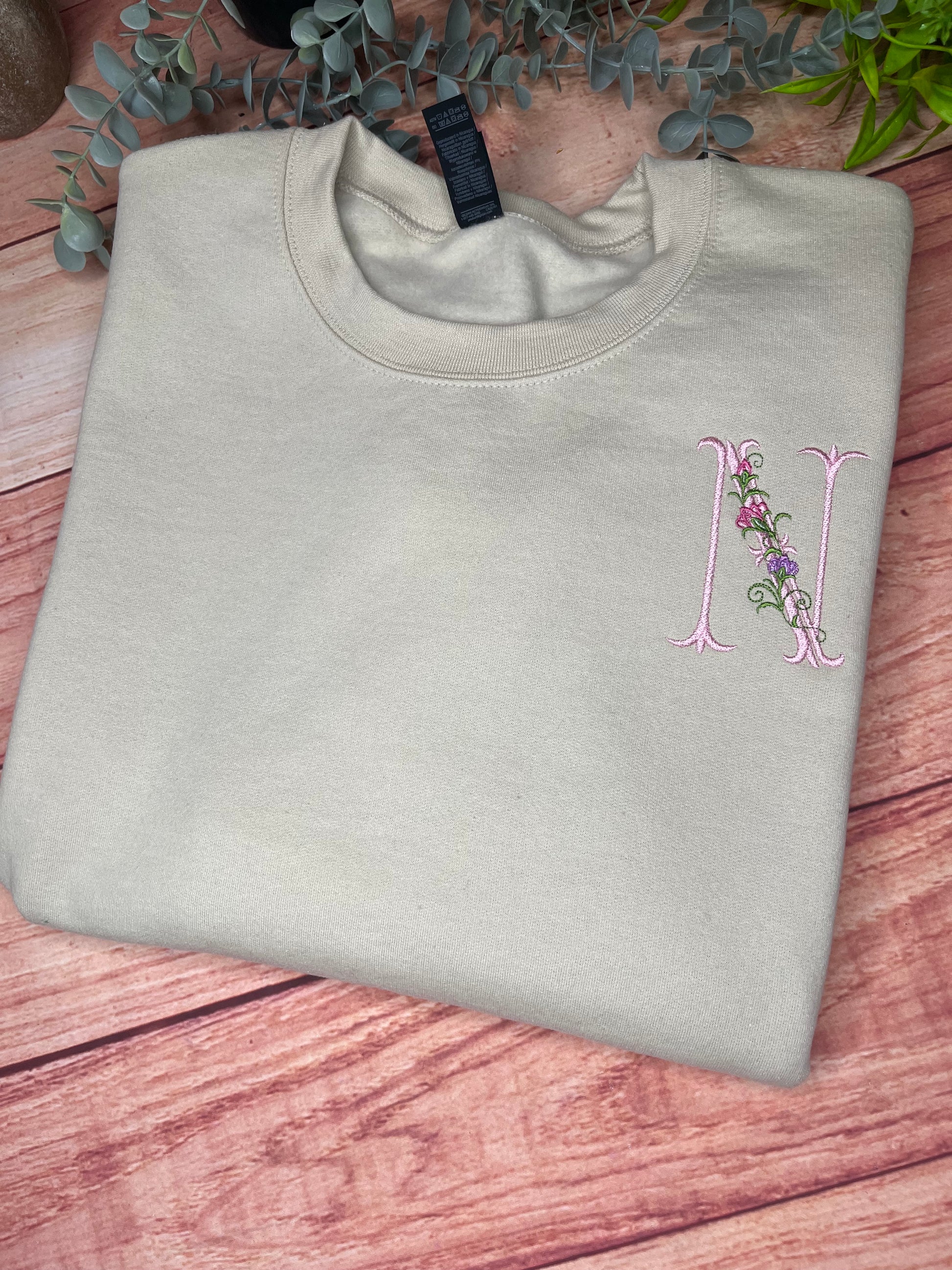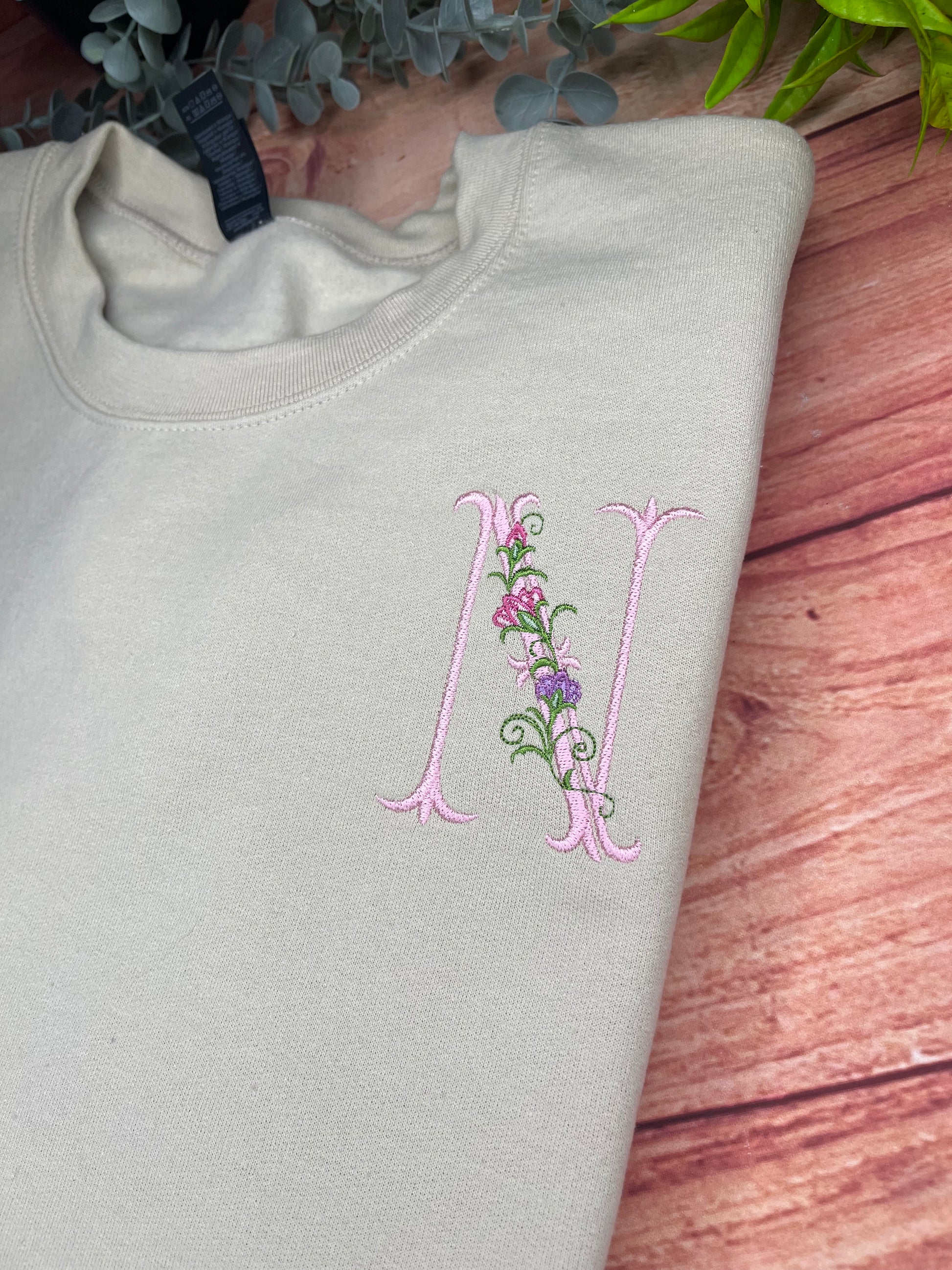 Personalized Floral Initial Sweatshirt – Uppercase Letter Embroidery
