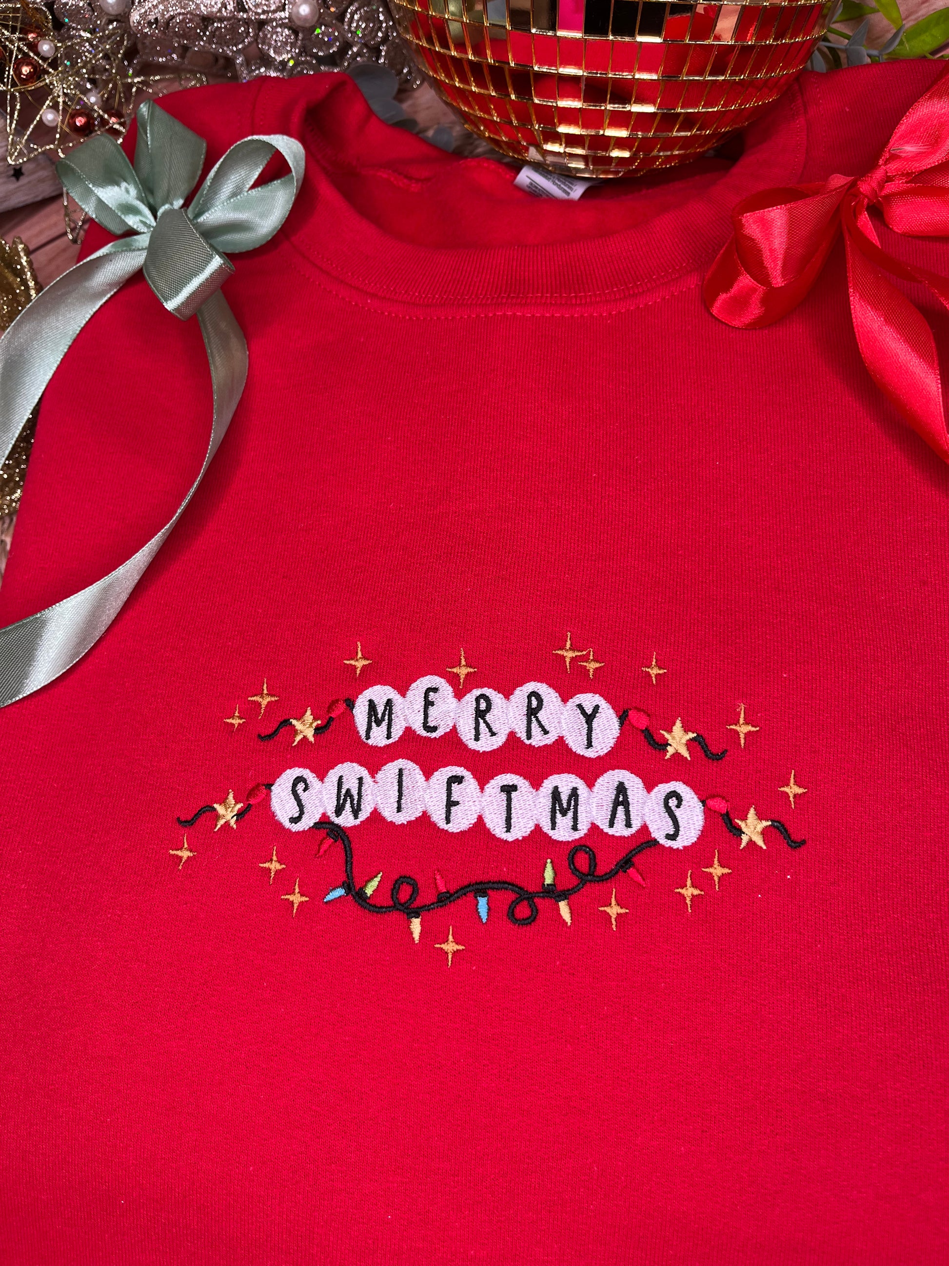 Celebrate Taylor Swift's new era with this stunning "Merry Swiftmas" embroidered sweatshirt!