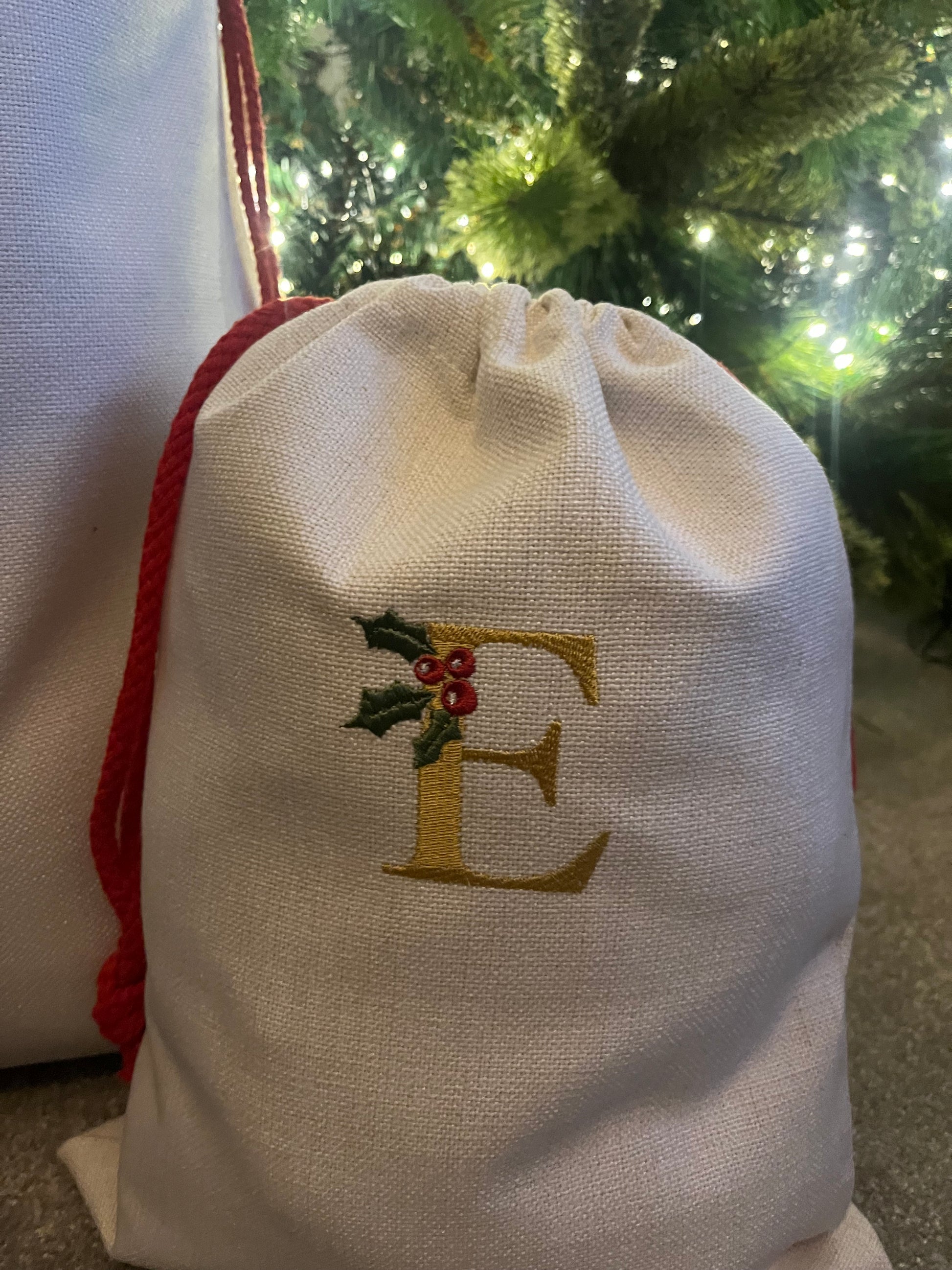 PERSONALISED SANTA SACKS WITH EMBROIDERED INITIAL